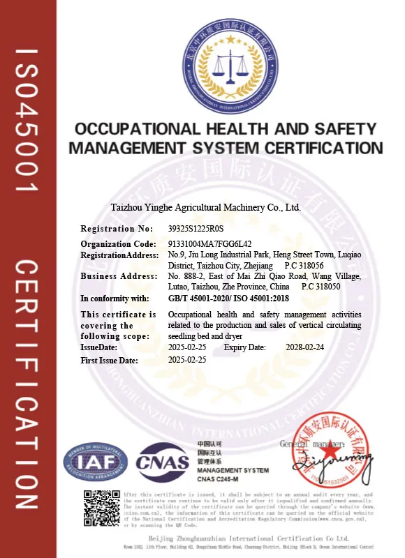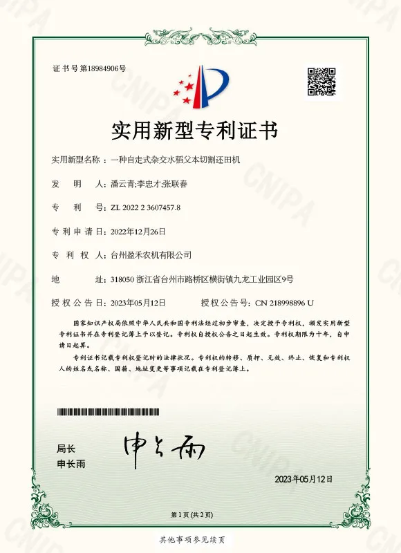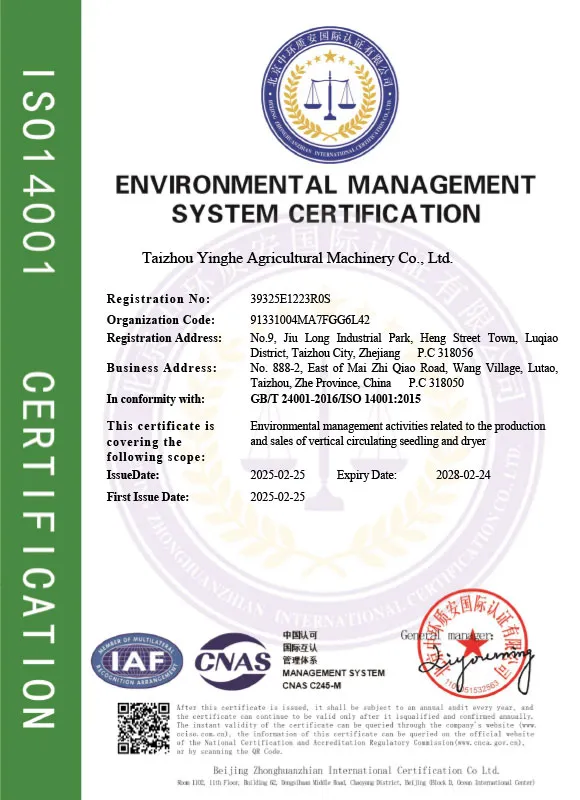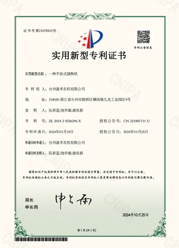 ООО Тайчжоу Инхэ Сельскохозяйственная Техника — это профессиональная компания по производству сельскохозяйственной техники, расположенная в городе Тайчжоу провинции Чжэцзян. Она предлагает комплексные решения, включающие проектирование, производство и обслуживание.